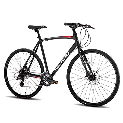 Hiland Road Hybrid Bike Urban City Commuter Bicycle with Disc Brake for Men Comfortable Bicycle 700C Wheels 24 speeds Bikes Black